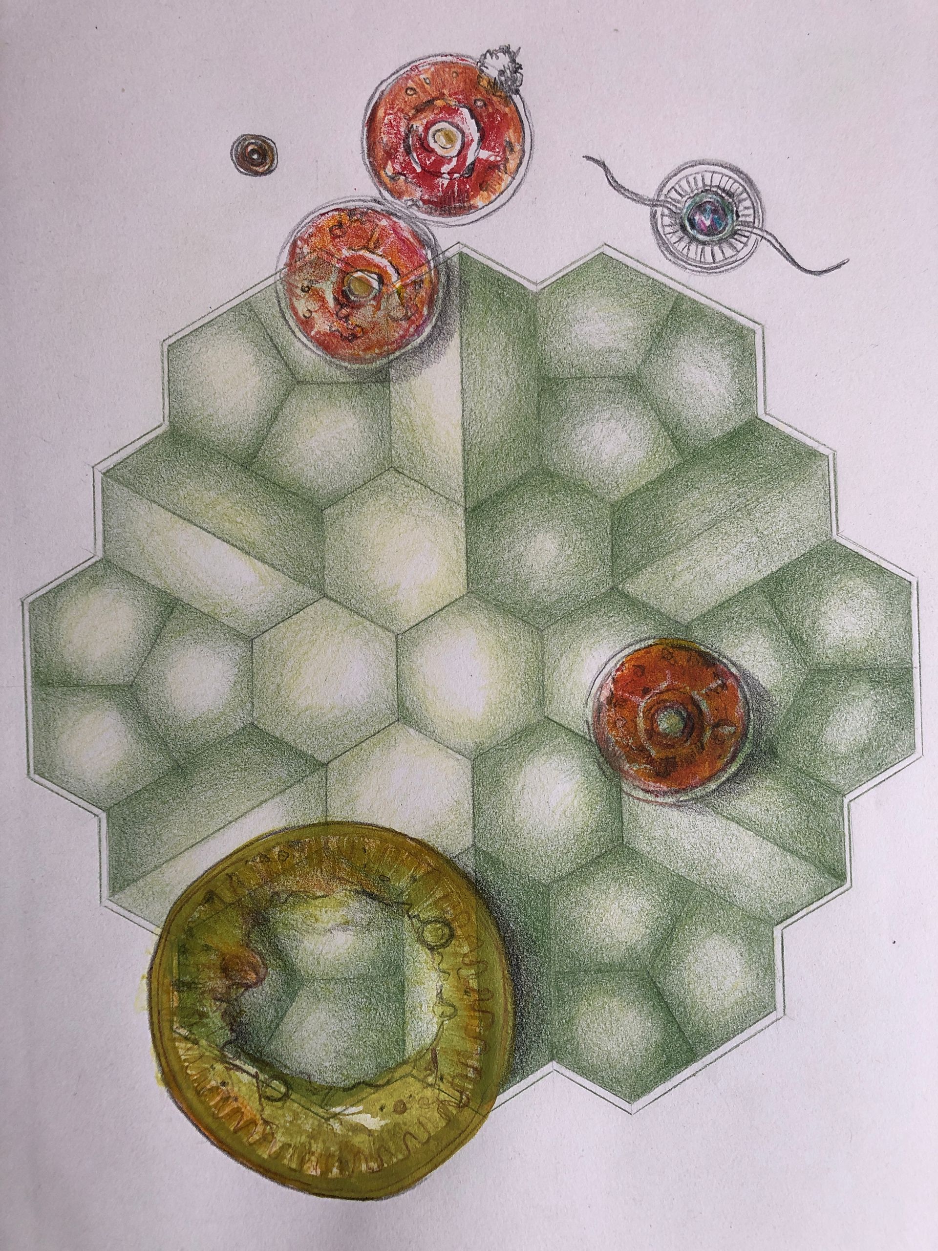 De natuur produceert voortdurend nieuw leven. De behuizingen waar het jonge leven in opgroeit bestaan uit waanzinnige vormen: gracieus, robuust, elegant en efficiënt. Sterk en toch kwetsbaar. Nieuw leven begint dikwijls glazig, doorzichtig. Naarmate je langer kijkt wordt het oog een eindeloze wereld in getrokken. Hier vindt je een verzameling (microscopisch) zeeleven, algen, eikapsels en zaaddozen van dieren, bomen en planten.