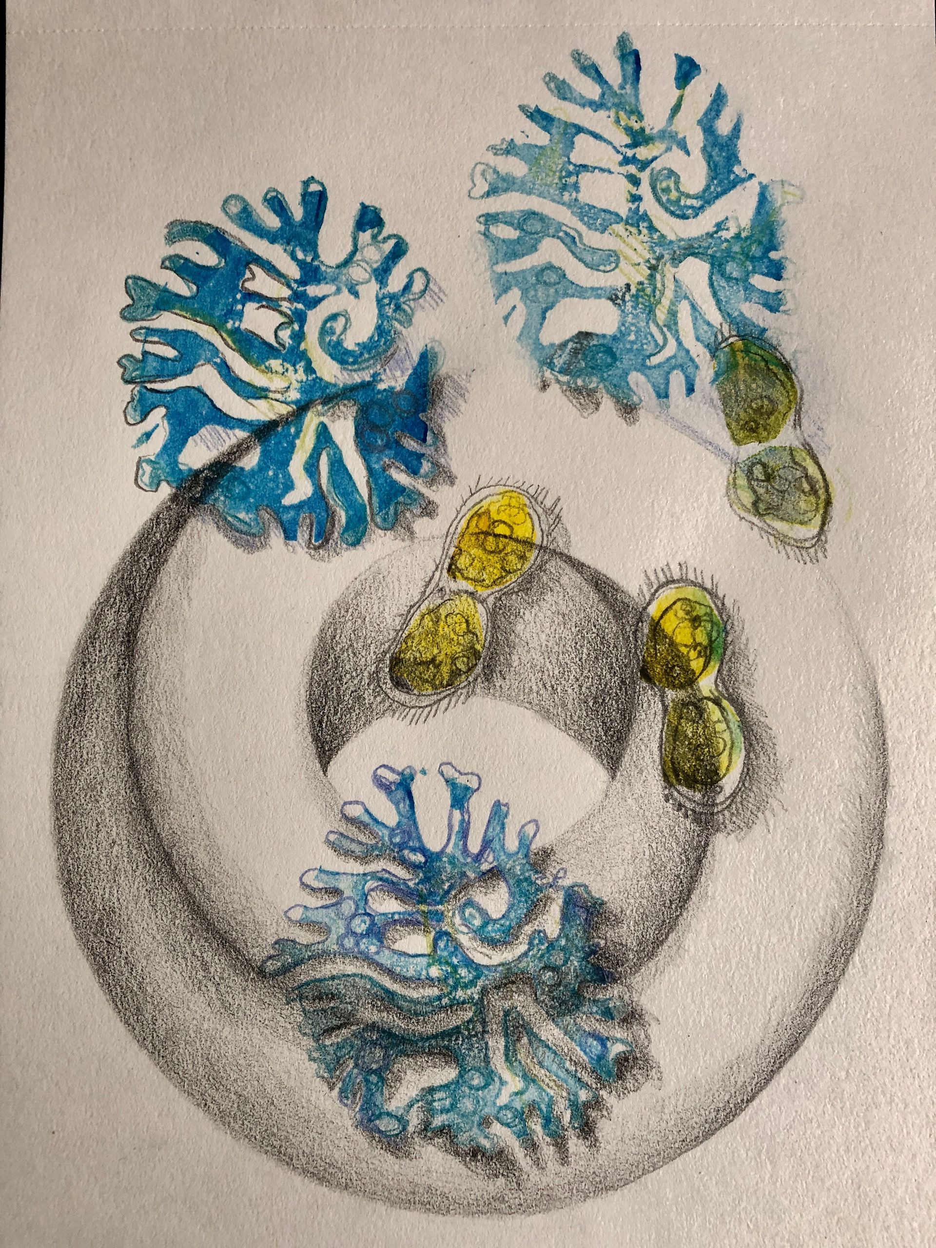De natuur produceert voortdurend nieuw leven. De behuizingen waar het jonge leven in opgroeit bestaan uit waanzinnige vormen: gracieus, robuust, elegant en efficiënt. Sterk en toch kwetsbaar. Nieuw leven begint dikwijls glazig, doorzichtig. Naarmate je langer kijkt wordt het oog een eindeloze wereld in getrokken. Hier vindt je een verzameling (microscopisch) zeeleven, algen, eikapsels en zaaddozen van dieren, bomen en planten.